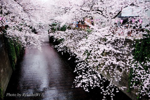 再び目黒川へ戻ってきて夜桜の撮影ですが、ものすごい人で、撮影スポットの橋の上はパニックに近い状態。